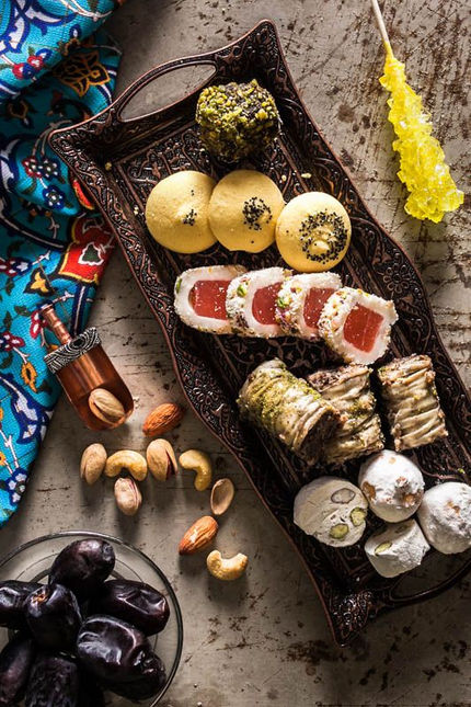 La comida persa es muy elaborada; abundan en sus platos el arroz, la carne de pollo y de cordero, y verduras frescas (todo en un plato). Es habitual también encontrar frutos rojos como puede ser la granada y, sin falta, el azafrán, que se puede servir como condimento o también a modo de delicioso té. Las sopas son tipo cocido, y los estofados son algo común. Hablando de la comida, no hay que olvidarse de los postres iraníes: